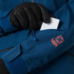 - Wrist gaiters with thumbholes help keep sleeves in place and snow on the outside
