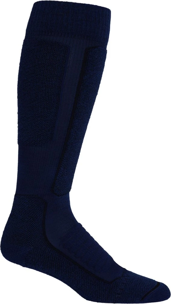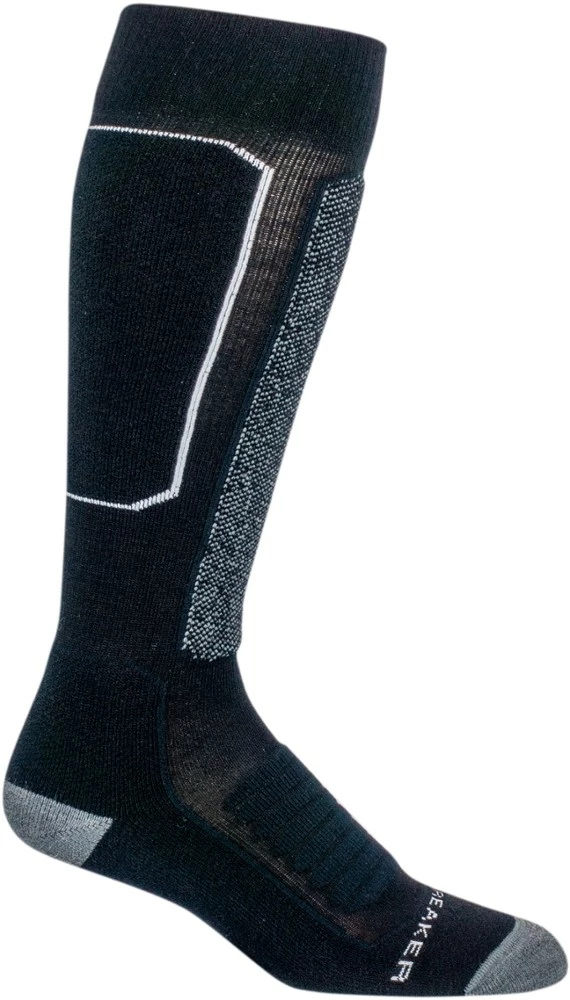 Fully cushioned for skiing the resort or the backcountry, the men’s Icebreaker Ski+ Medium OTC (Over The Calf) socks are built with a durable, breathable merino wool blend.