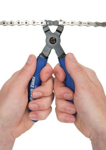 - Simply insert the specially sized jaws into the master link, then squeeze the handles to open or pull the handles to close the link