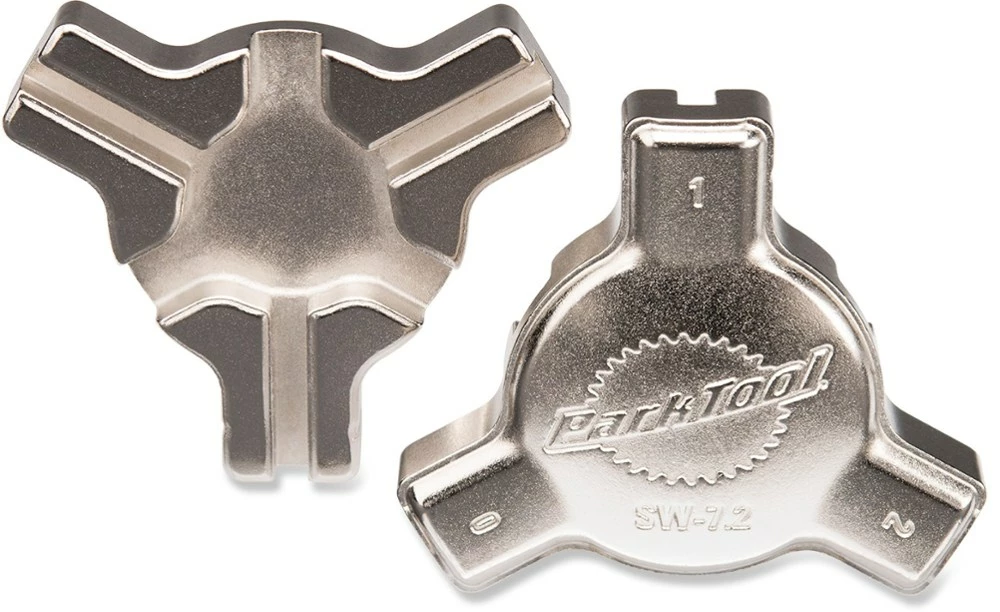 This professional-quality, precision-sized, triple spoke wrench fits the 3 most common spoke nipple sizes.