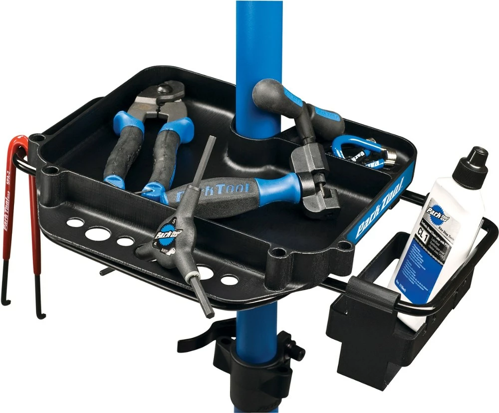 The Park work tray is a great work stand accessory built to keep tools, lubes and spare parts close at hand.